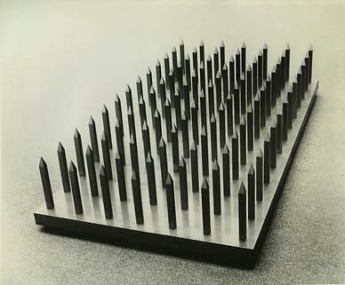Walter De Maria is an American sculptor. He lives and works in New York. He was born in Albany, Californiaon October 1, 1935. His sculpture reveals a debt to Dada and other 20th-century avant-garde movements then under revision by young artists. His simple, often cryptically inscribed works owe much of their oblique spirit and deadpan execution to Marcel Duchamp’s ready-mades, yet they explore the appeal of pure, usually serialized forms, which become characteristic of Minimalism.