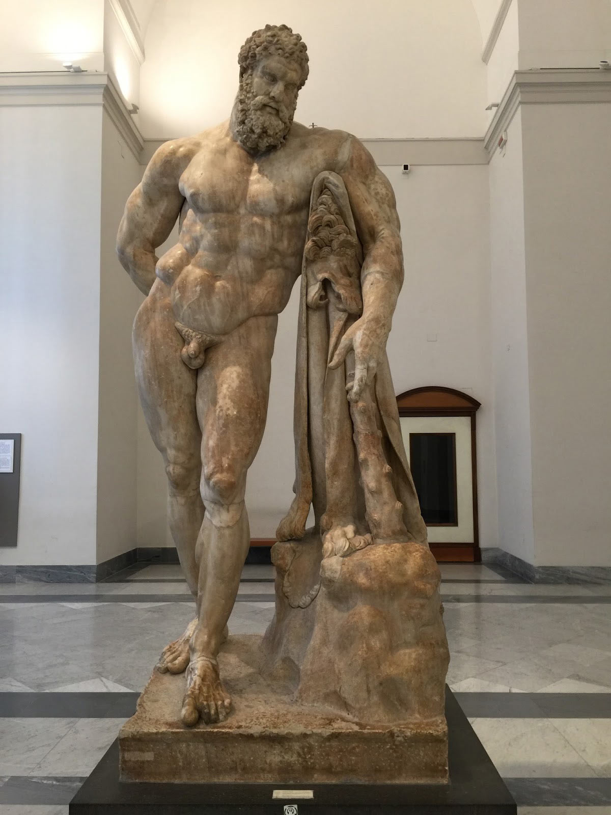 Tra le opere del museo archeologico di Napoli la scultura di “Ercole Farnese” è la più importante.